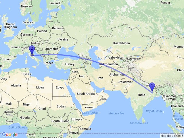 India To Italy Map